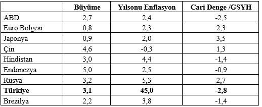 Öncelikle dünya ekonomisinin görünümünü 2022 ile karşılaştırmalı olarak paylaşalım: