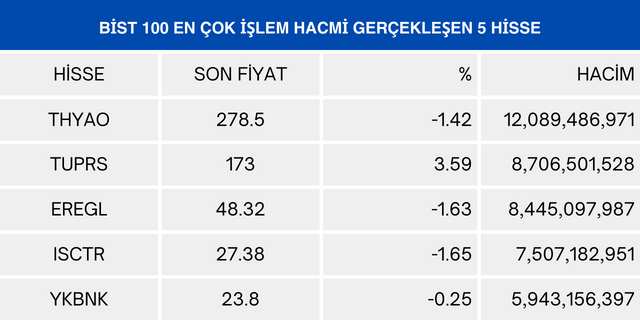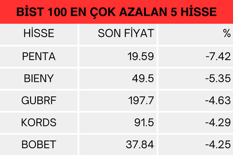 Borsa İstanbul endeks 100 de işlem gören hisselerden en çok artan, en çok azalan ve en çok işlem hacmi gerçekleşen 5 hisse şöyle: ü ü ü