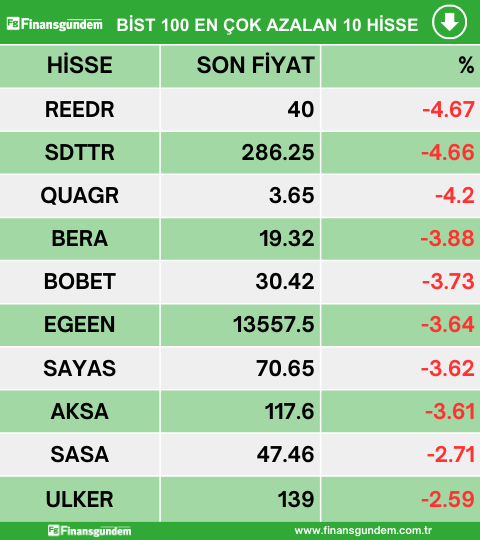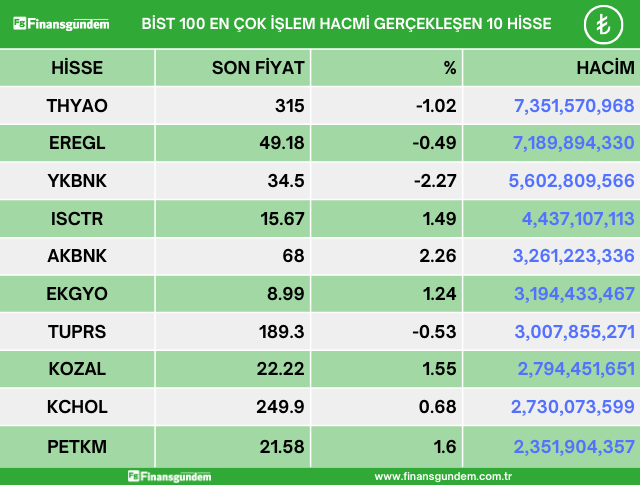 Borsa İstanbul endeks 100 de işlem gören hisselerden en çok artan, en çok azalan ve en çok işlem hacmi gerçekleşen 10 hisse şöyle: ü ü