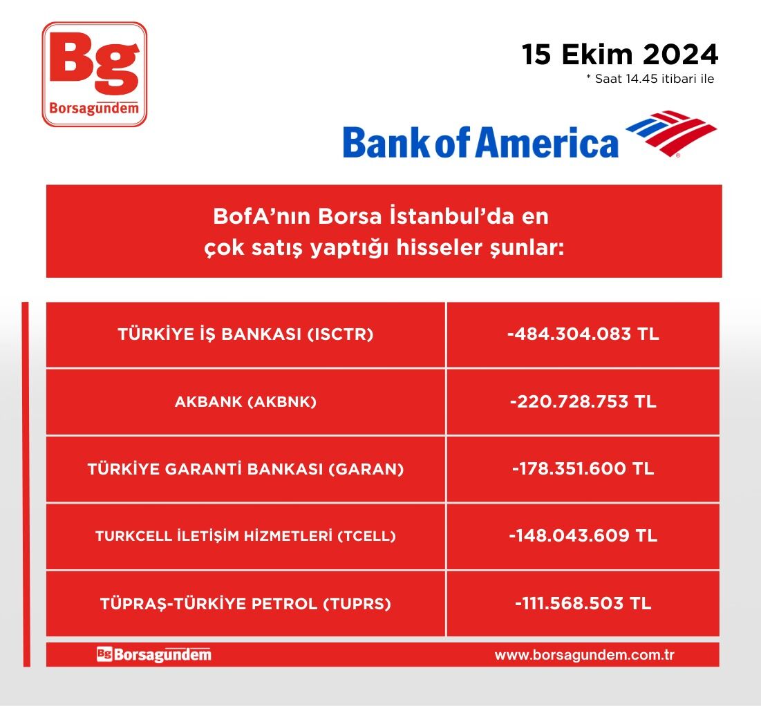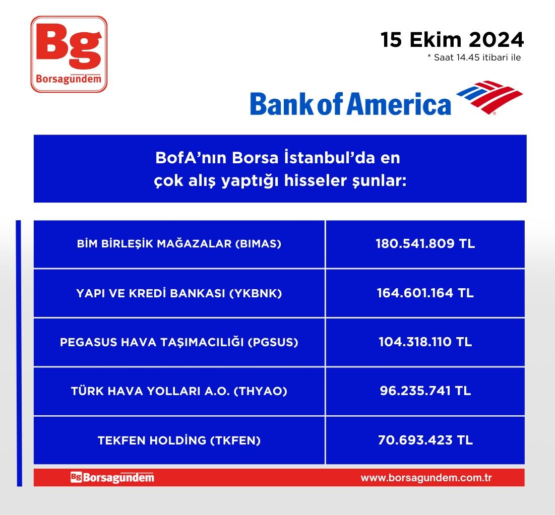 BofA'nın en çok alım satım yaptığı hisseler (14.45 itibariyle)