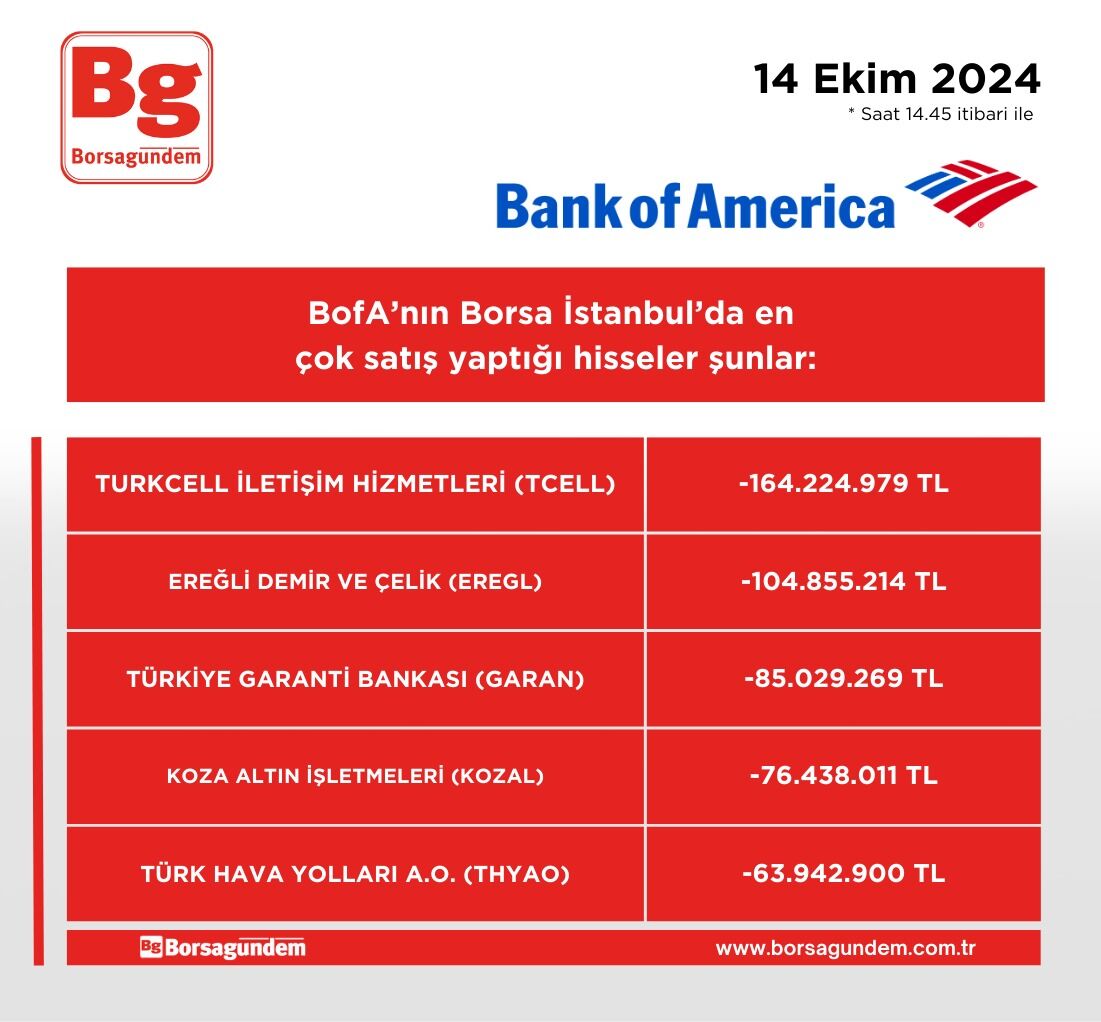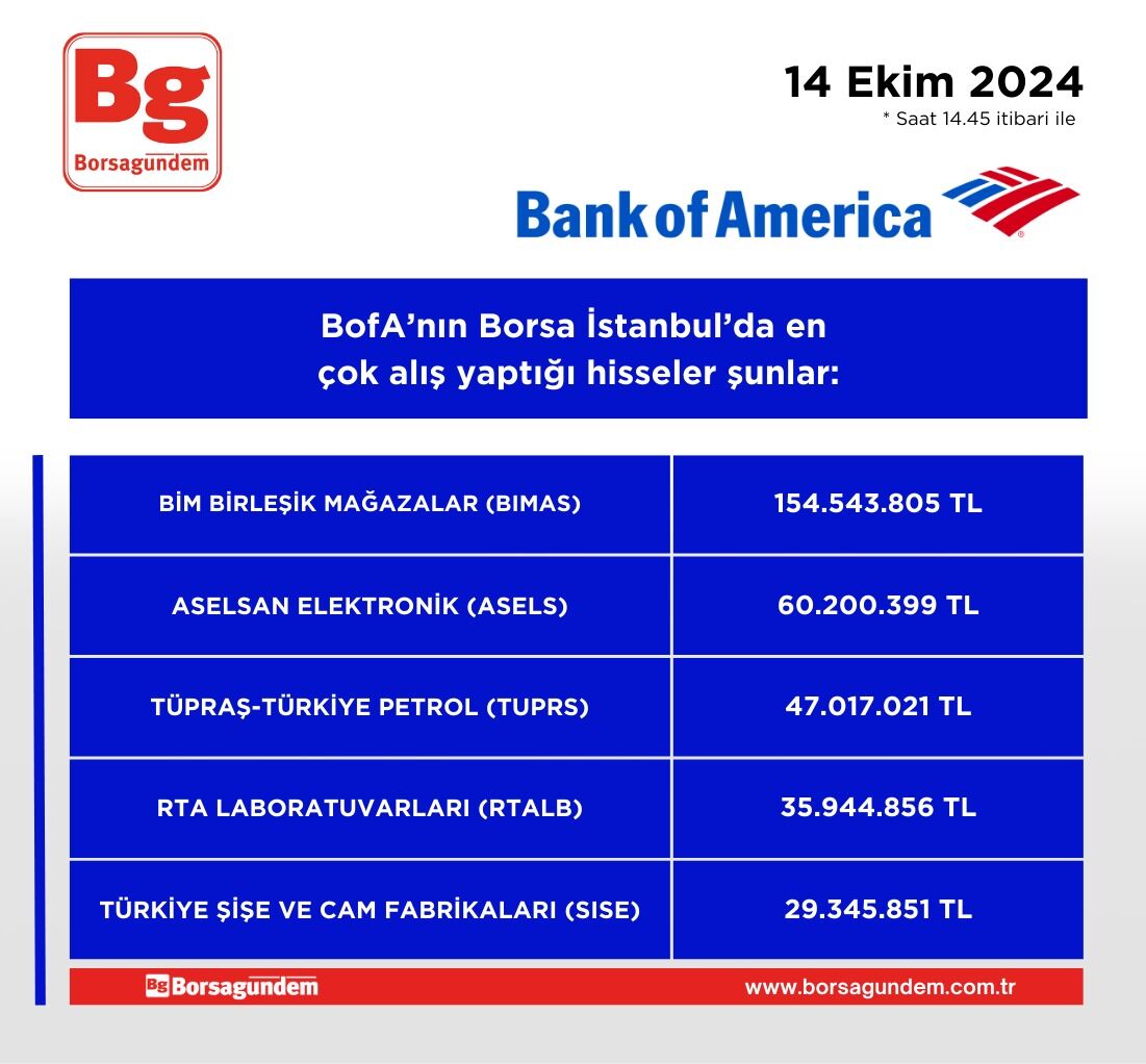 BofA'nın en çok alım satım yaptığı hisseler (14 Ekim)