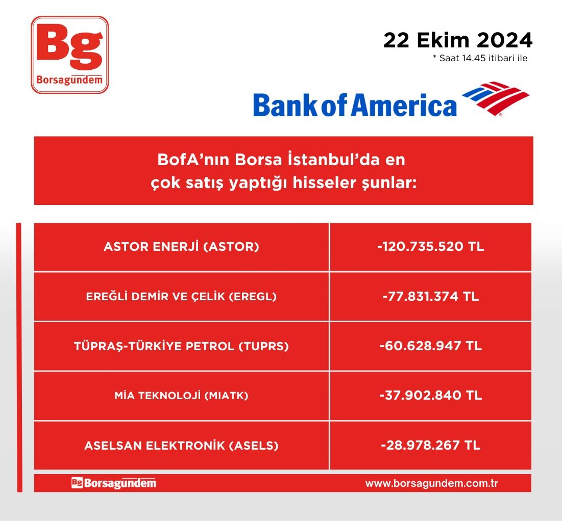 BofA'nın en çok alım satım yaptığı hisseler (14.45 itibariyle)