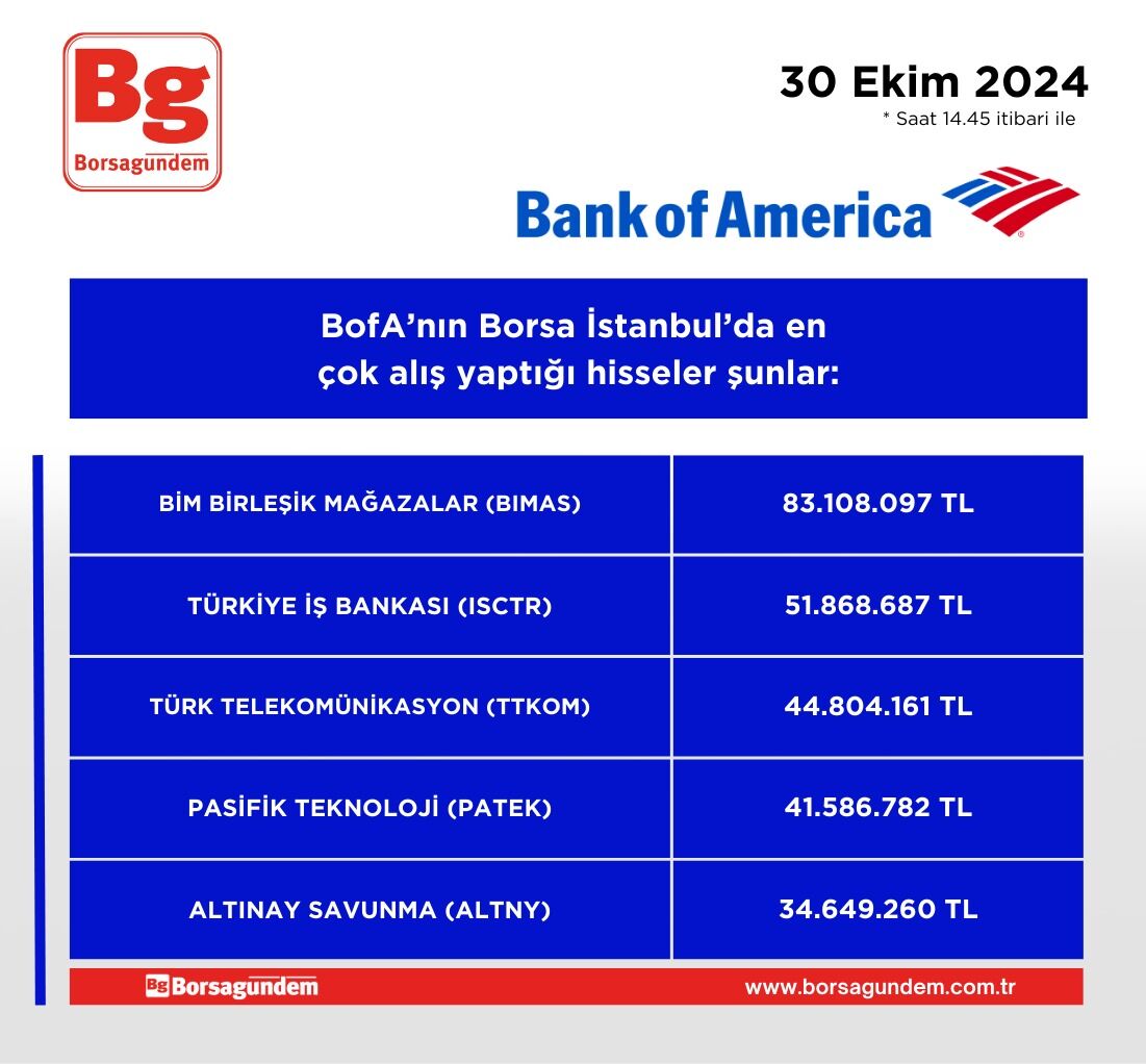 BofA'nın en çok alım satım yaptığı hisseler (14.45 itibariyle)