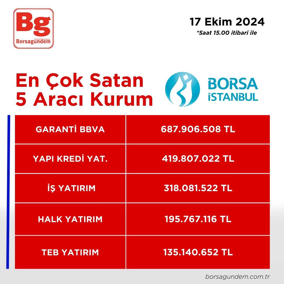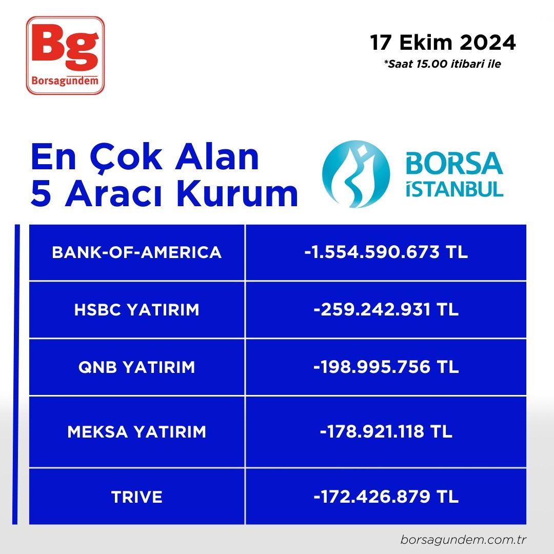 Borsada en çok alım satım yapan aracı kurumlar (Saat 15.00 itibariyle)