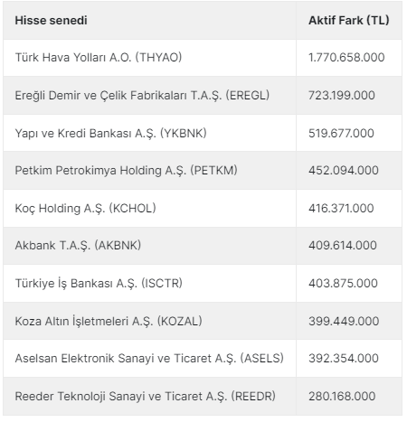 Bugün, BİST100 endeksinde aktif alış satışlarda aktif fark +9.823.023.000 TL olurken, BİST30 endeksinde ise +7.572.775.000 TL aktif fark meydana geldi. Tüm hisselerde ise +11.563.530.000 TL aktif işlem farkı oldu. BİST100 endeksi günü %3,54 yükselişle geride bırakırken aktif işlem farkı pozitif olan bazı hisseler dikkat çekti.