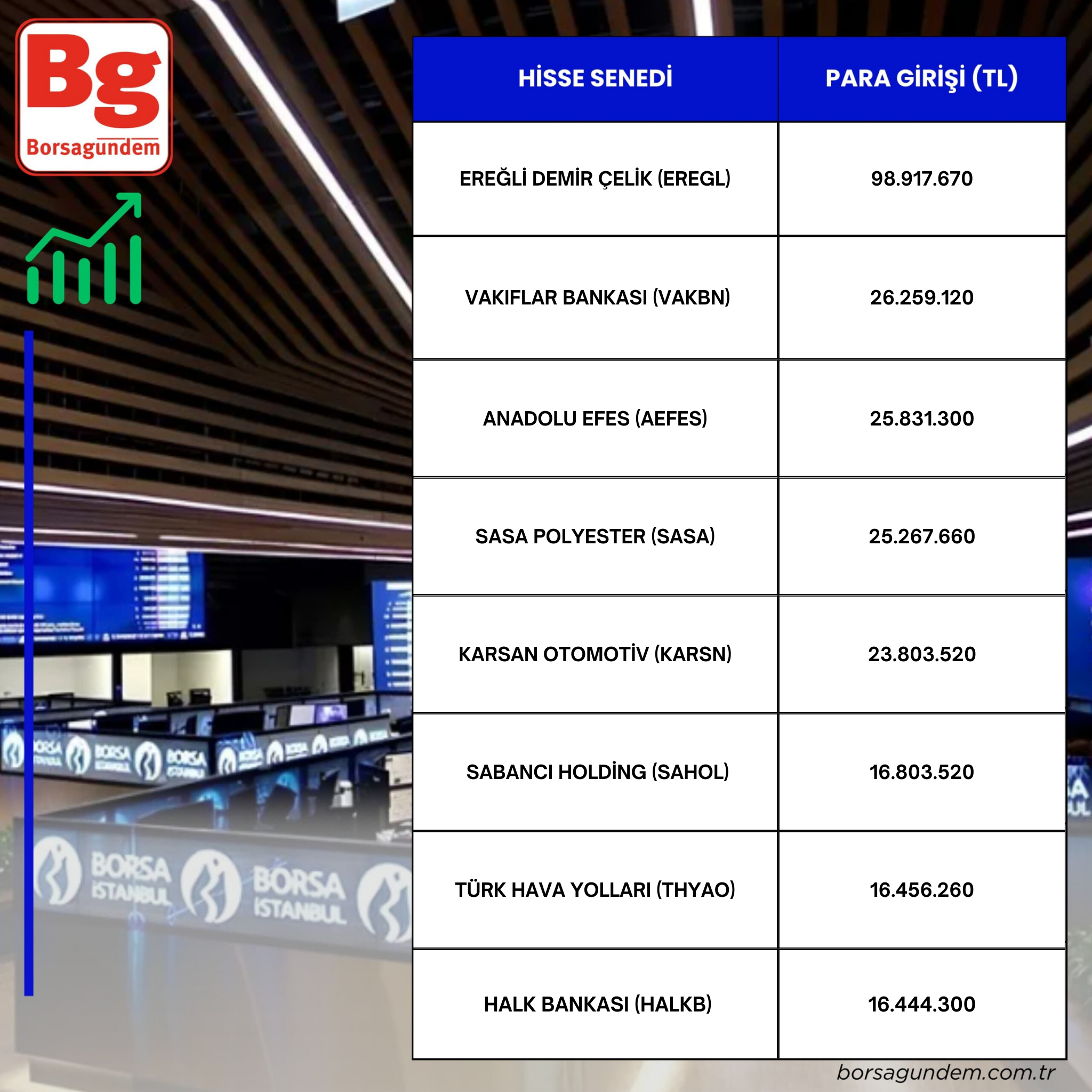Bugün Borsa İstanbul’da para girişi olan hisseler şunlar: