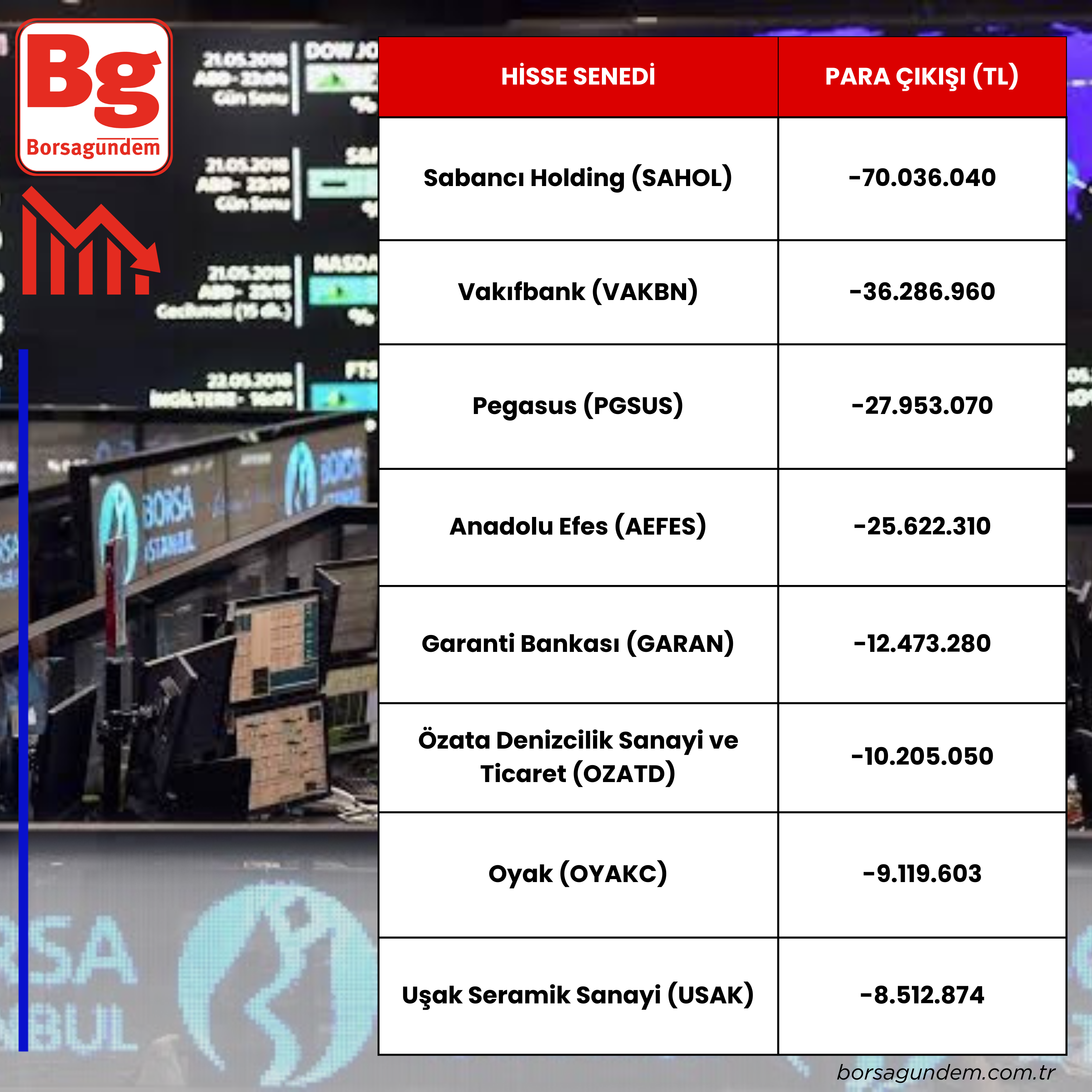 Para çıkışı olan hisseler