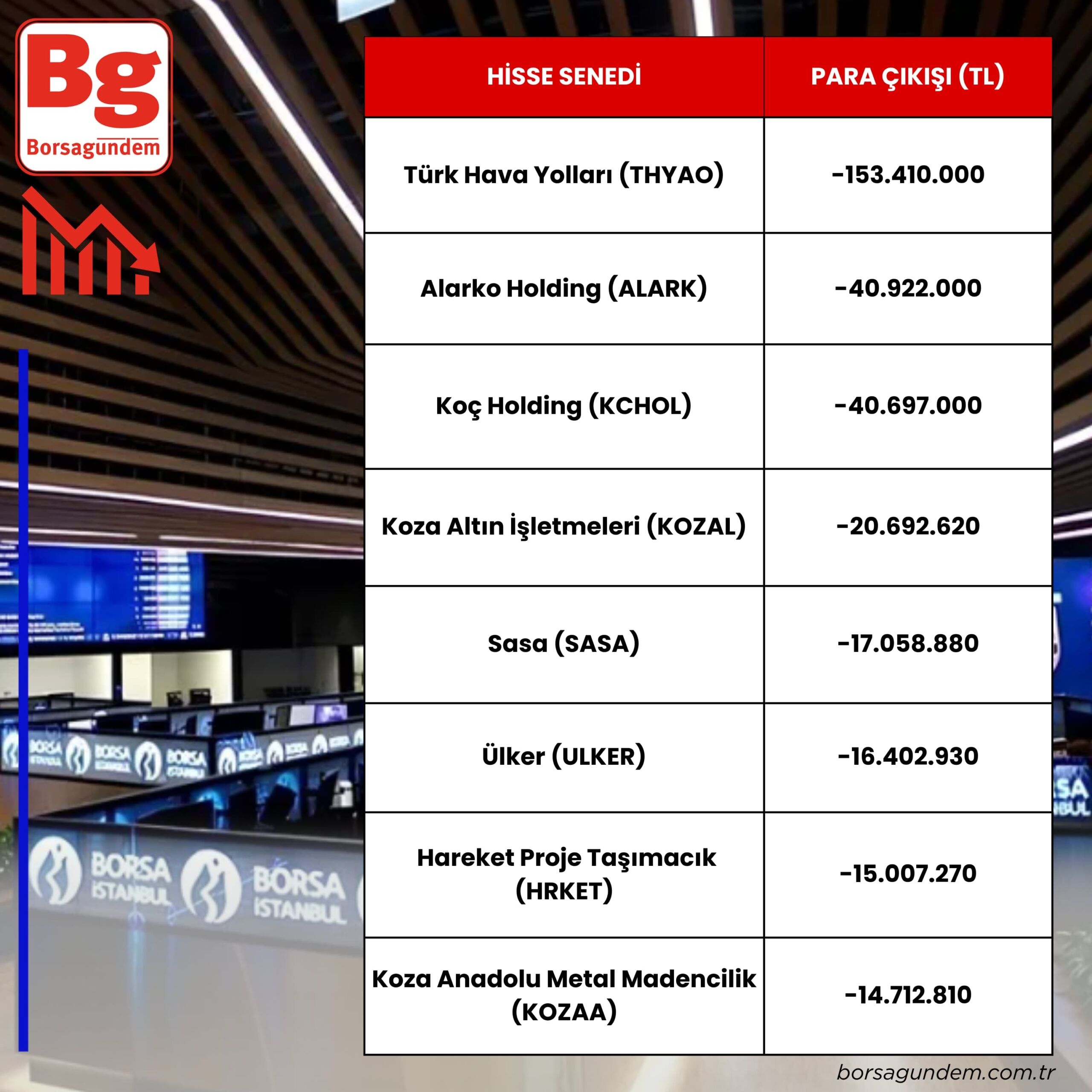 Para çıkışı olan hisseler: