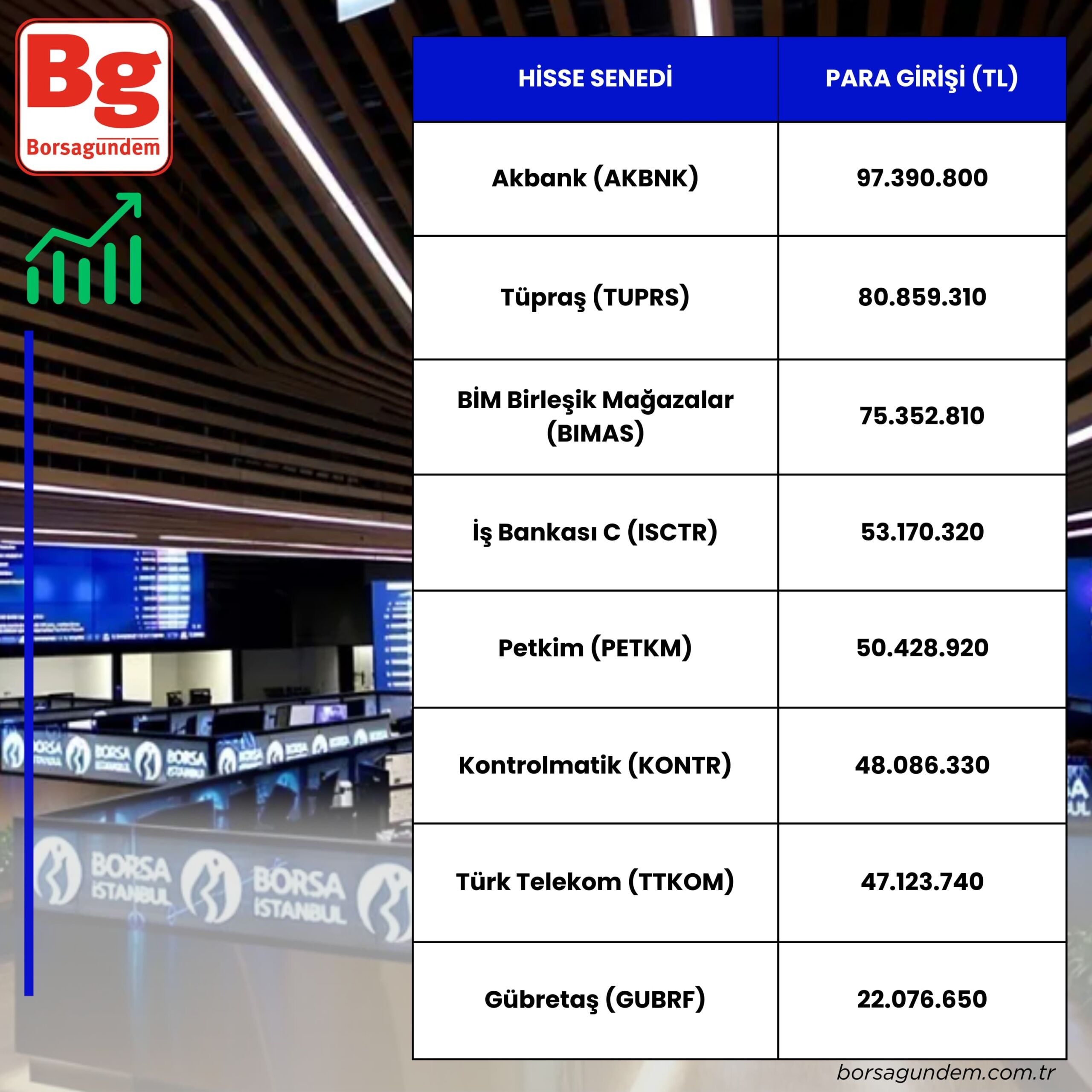 Para girişi olan hisseler: