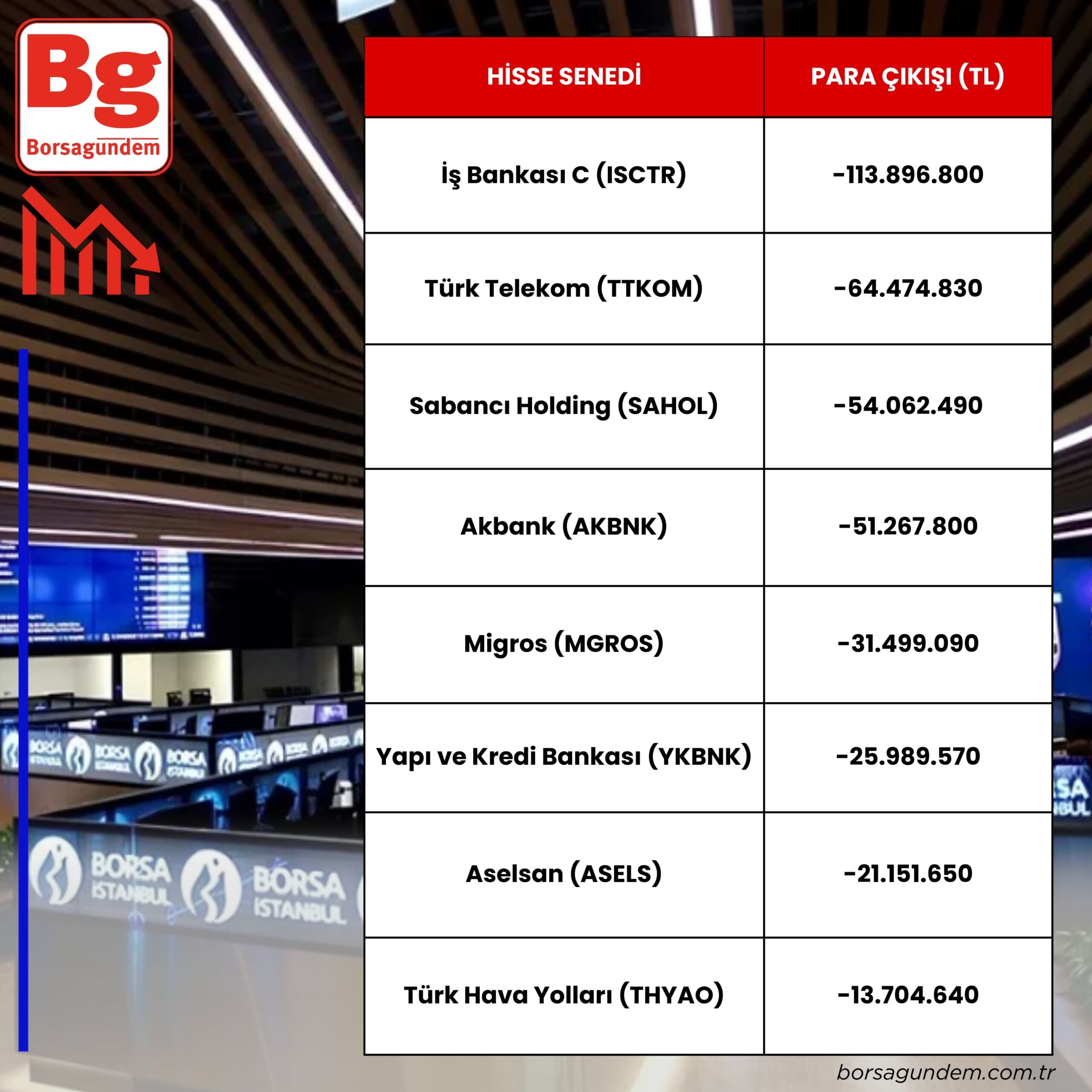 Para çıkışı olan hisseler: