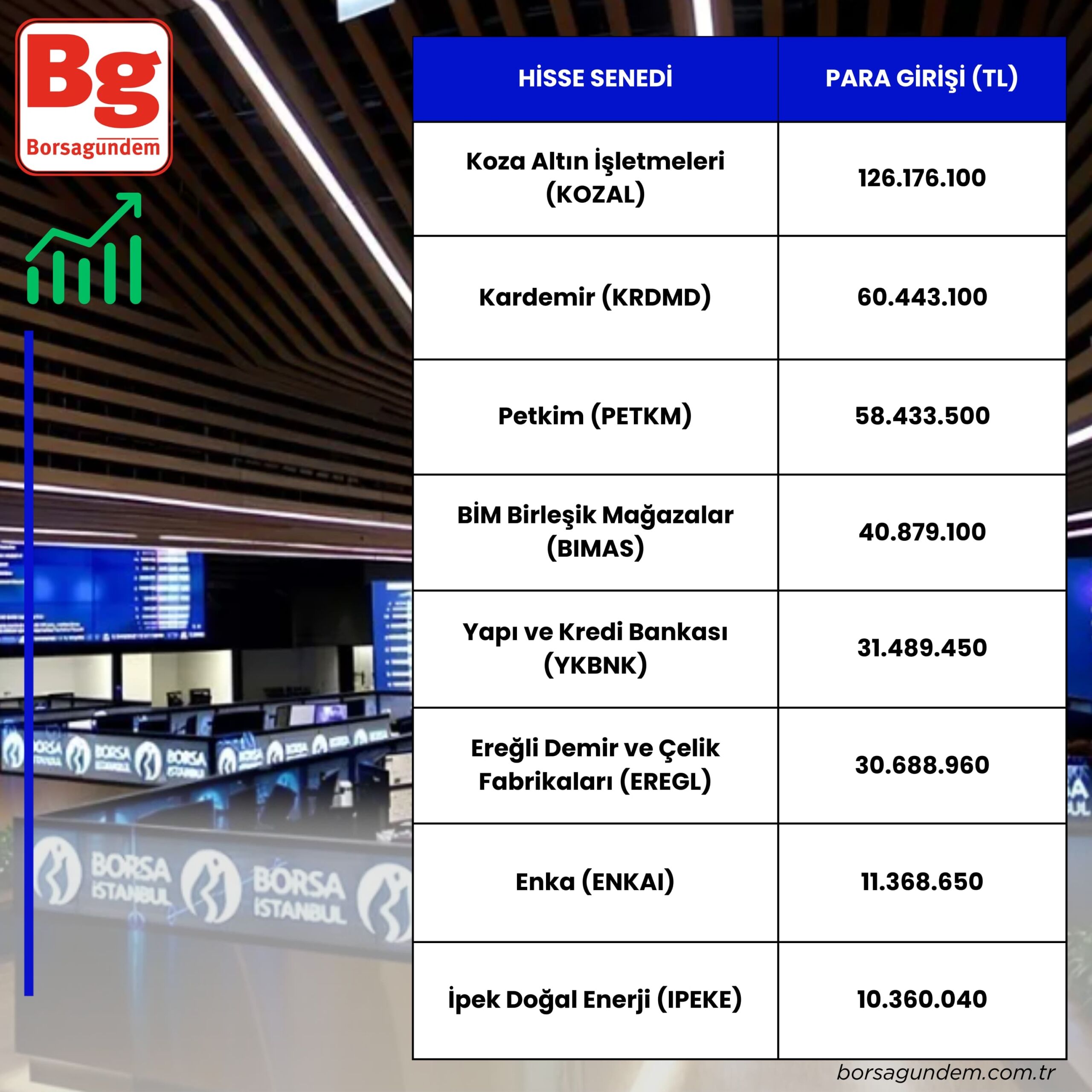 Para girişi olan hisseler: