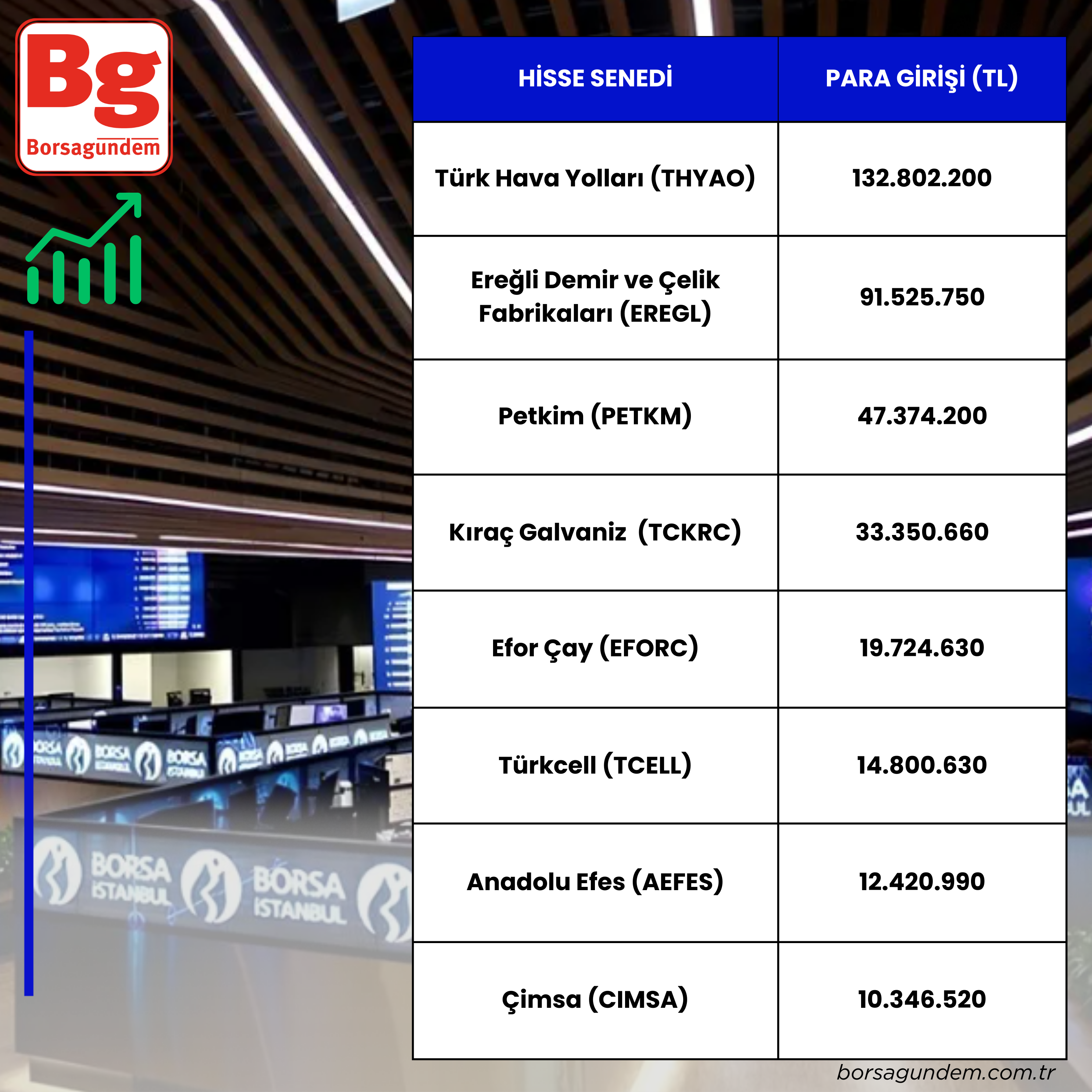 Para girişi olan hisseler: