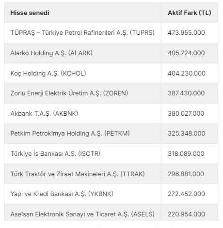 Aktif işlem farkı pozitif olan bazı hisseler öne çıktı.