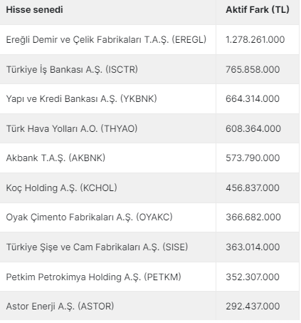 Tüm hisselerde +9.050.605.000 TL aktif işlem farkı oldu.