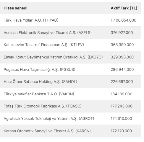Bugün, BİST100 endeksinde aktif alış satışlarda aktif fark +3.851.282.000 TL olurken, BİST30 endeksinde ise +3.031.856.000 TL aktif fark meydana geldi. Tüm hisselerde ise +5.270.595.000 TL aktif işlem farkı oldu. BİST100 endeksi 22 Şubat Salı gününü geride bırakırken aktif işlem farkı pozitif olan bazı hisseler dikkat çekti.