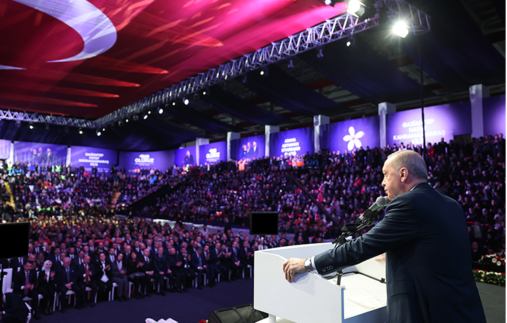 6 Şubat asrın felaketinde yitirdikleri 53 bin 737 kişinin her birine Allah'tan rahmet niyaz eden Erdoğan, salondakilerle birlikte şehitler için Fatiha suresini okudu.