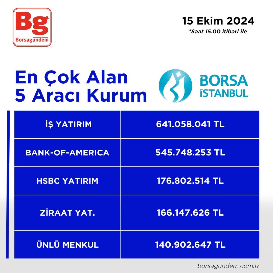 En çok alım satım yapan aracı kurumlar (15.00 itibariyle)