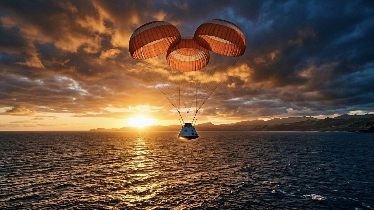 Eğer her şey planlandığı gibi giderse, saat 03:07'de üç paraşüt açılacak ve Orion kapsülü saatte 32 kilometreye yavaşlayarak Pasifik'e inecek. USS John P. Murtha savaş gemisi ve helikopterler orada bekliyor olacak.