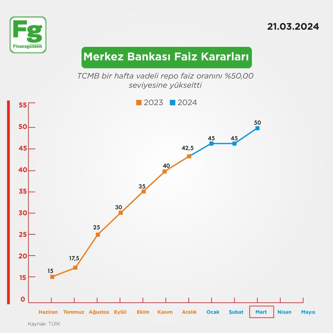 Mart ayı için ekonomistlerin beklentisi faizin sabit tutulacağı yönündeydi.