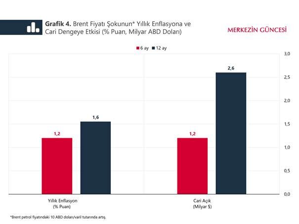 Özetle; ham petrol fiyatları oldukça oynak bir yapıya sahip ve yıl içinde sert dalgalanmalar sergileyebiliyor. Son haftalardaki gelişmeler bu durumu teyit etti. Ham petrol fiyatlarında keskin yükselişlere yol açan gelişmeler, kalıcı bir nitelik kazandıkları ölçüde, temel makroekonomik göstergeler üzerinde olumsuz etkilere neden olabiliyor.[5] Brent petrol varil fiyatında gerçekleşebilecek 10 ABD doları tutarında bir artış varsayımıyla yaptığımız hesaplamalar, temel makroekonomik değişkenler üzerindeki etkinin yönetilebilir olduğuna işaret ediyor.