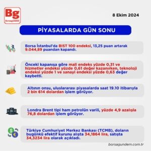 Borsa İstanbul'da BIST 100 endeksi, 13,25 puan artarak 9.044,89 puandan kapandı.