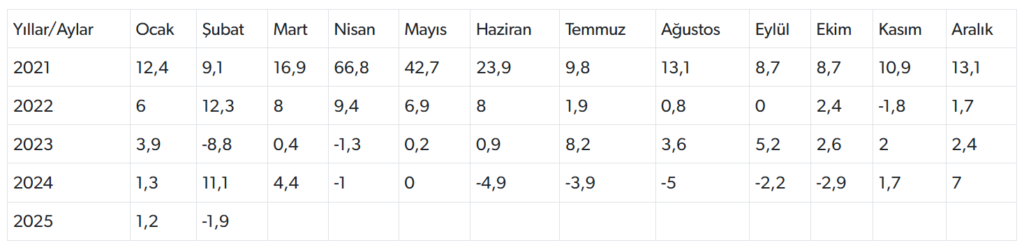TÜİK verilerine göre, sanayi üretim endekslerinin takvim etkisinden arındırılmış yıllık değişim oranları şöyle: