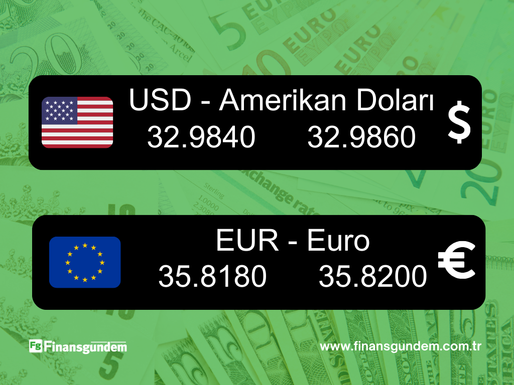 Cuma günü doların satış fiyatı 32,9680 lira, avronun satış fiyatı ise 35,8090 lira olmuştu.
