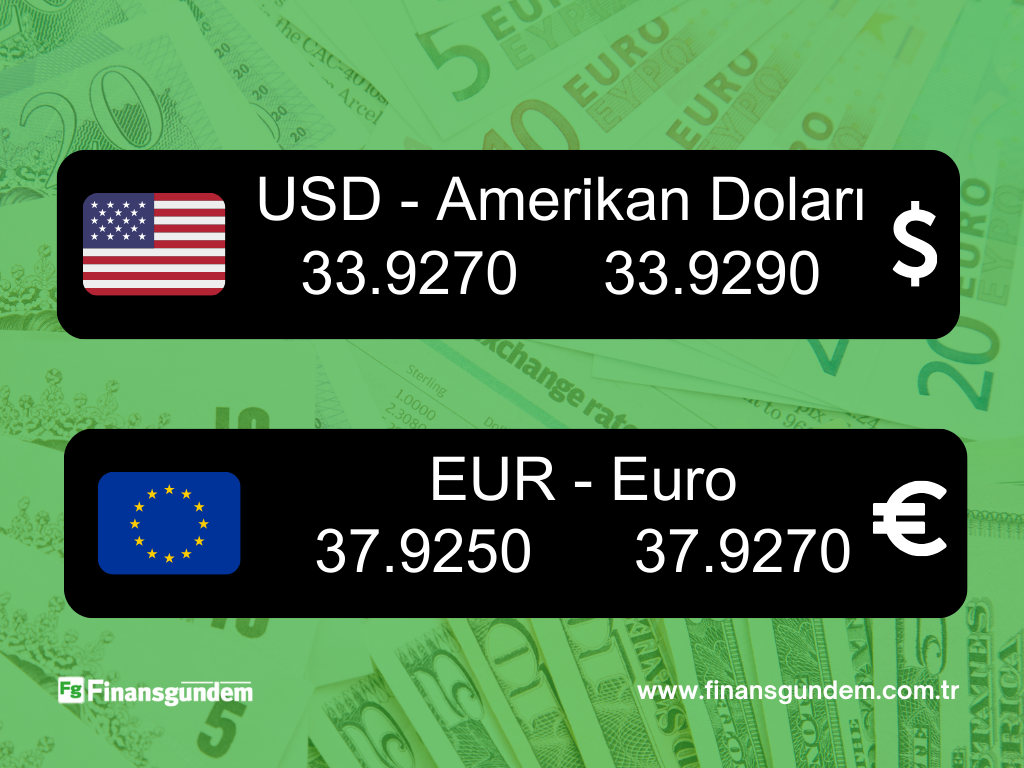 Dünkü doların satış fiyatı 33,9310 lira, avronun satış fiyatı ise 37,7390 lira olmuştu.