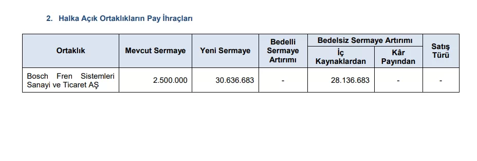 Sermaye Piyasası Kurulu (SPK) 2024-11 numaralı bültenini yayınladı. Yayınlanan bültende Bosch Fren Sistemleri Sanayi ve Ticaret A.Ş. (BFREN) %1125,47 bedelsiz sermaye artırımına onay verildi.