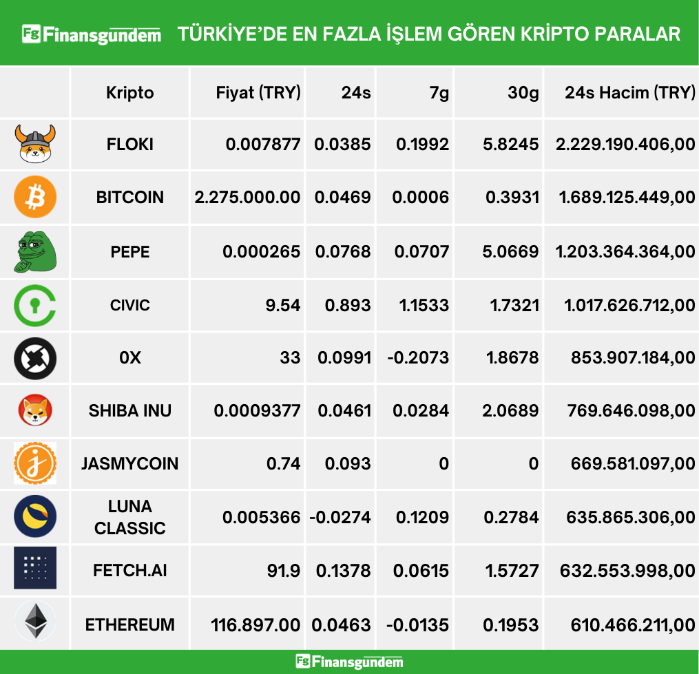 Türkiye’de faaliyet gösteren dijital para alım satım borsalarında, en çok işlem gören kripto paralar