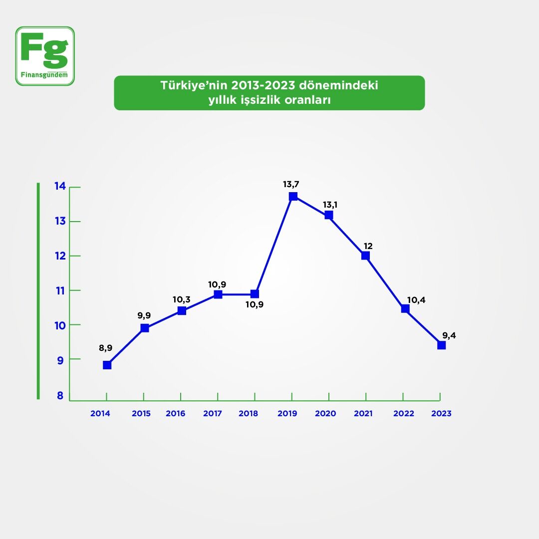 Türkiye’nin 2013-2023 dönemindeki yıllık işsizlik oranları şöyle: