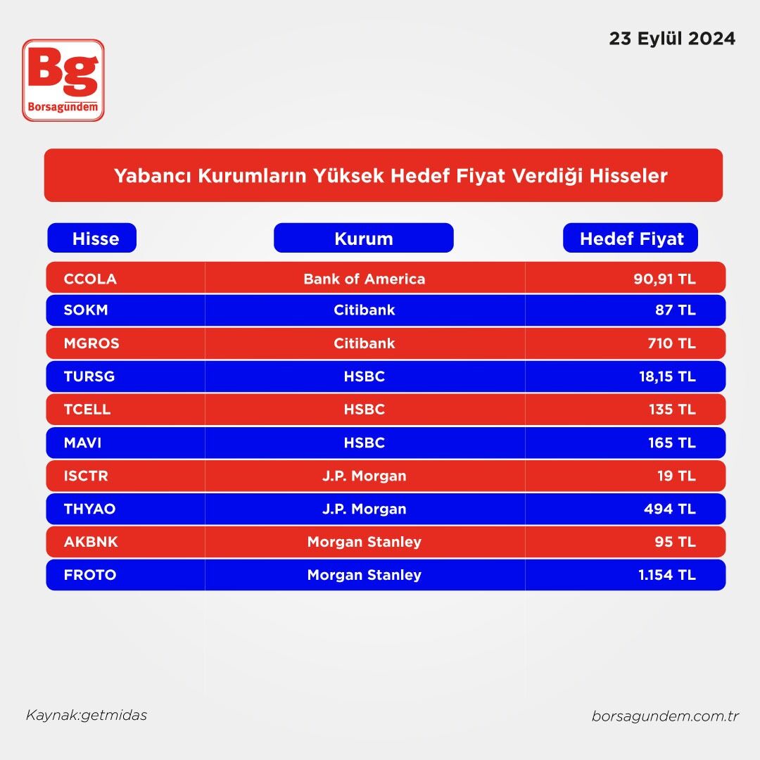 İşte yüksek hedef fiyat verilen hisseler 👇